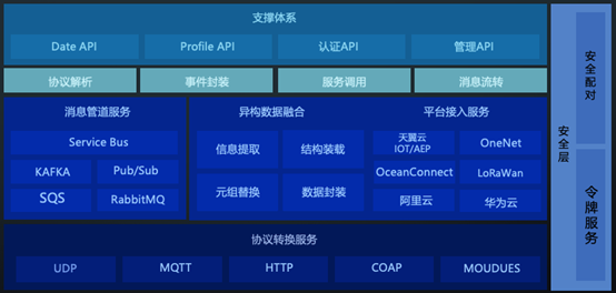 澳亚国际物联网中台是连接终端、平台与行业应用系统的数据交换中心。旨在解决不厂商、不同品类、不同通讯类型的终端端产品快速上云,同时实现对产品管理、产品协议解析、设备管理、存储、转发和命令下发等功能;应用侧提供了丰富API接口,多元数据推送功能。使平台接入者可以更加专注于自身应用的开发,而不用将工作重心放在设备接入层的环境搭建上。从而缩短物联网系统的形成周期,降低平台接入者研发、运营和运维成本。